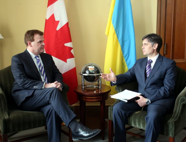 March 4, 2014: Canadian Foreign Minister John Baird with Ukraine’s ambassador to Canada, Vadym Prystaiko, Photo: iPolitics