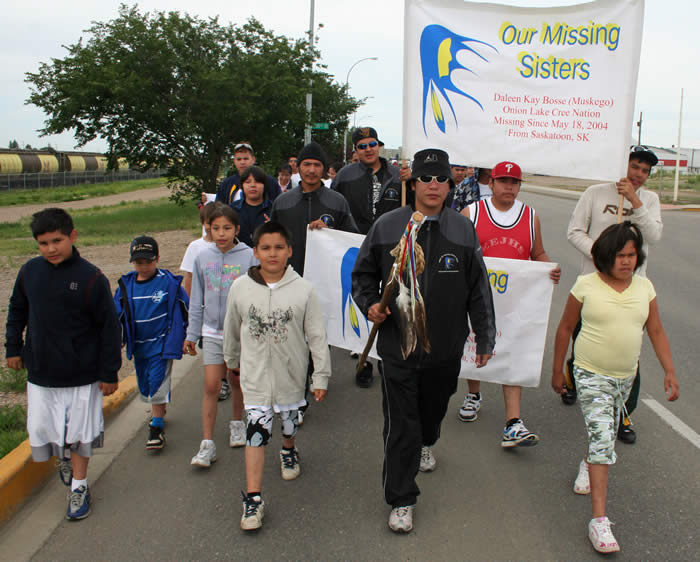 Marchers in Saskatchewan in July 2008, in the “Walk for Missing Sisters” to raise awareness about missing aboriginal women, children and men. Photo: Native Women’s Association of Canada