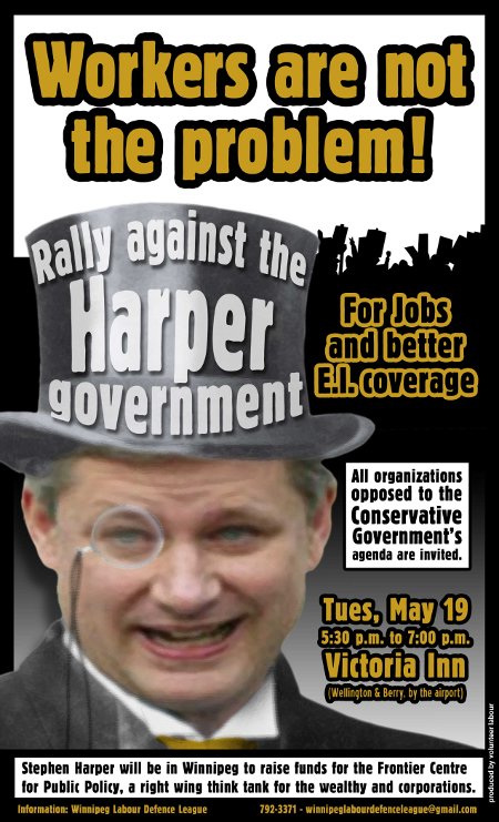 Stephen Harper will be in Winnipeg to raise funds for the Frontier Centre for Public Policy, a right wing think tank for the wealthy and corporations. All opposed to the Conservative Government’s agenda are invited.