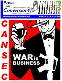 This latest issue of Press for Conversion! magazine, which marks COAT’s 20th anniversary, includes numerous articles and tables exposing Canada’s most profitable war industries and their complicity in the manufacture of dozens of major weapons systems used in Iraq, Afghanistan, Gaza and elsewhere.