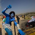 bilin-avatarsProtesters against the Israeli occupation of Palestine and the West Bank barrier wall take a more theatrical approach in Bil’in. On February 12, 5 Israeli, Palestinian and international demonstrators dressed as James Cameron-style Avatars marched towards the barrier, which has absorbed approximately 60% of this Palestinian village’s farmland, and were, per usual, met with tear gas and sound bombs. Though sporting blue painted bodies, pointy ears and long tails didn’t seem to faze the Israeli Defense Force, the tactics generated more media attention than usual for this weekly action.