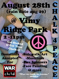 Come out and draw some art on the sidewalks and see how the pavement transforms throughout the day. With everything going on in this crazy planet of ours the world can always use a little bit more peace. If anybody wants to get involved and help out in any way that would be awesome, just give us a shout (on Facebook).