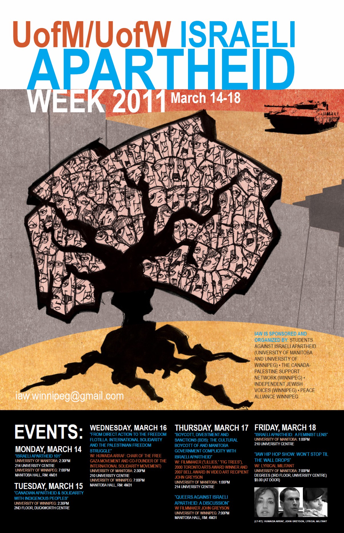 It’s Israeli Apartheid Week in Winnipeg, Canada and many other cities and towns around the world. In Winnipeg, Israeli Apartheid Week 2011 is taking place on the campuses of the University of Manitoba and the University of Winnipeg.