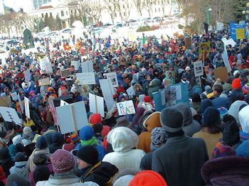 Feb. 15, 2003: Thousands of Winnipeggers joined millions worldwide in opposing the US-led invasion of Iraq. Photo: Glenn Michalchuk