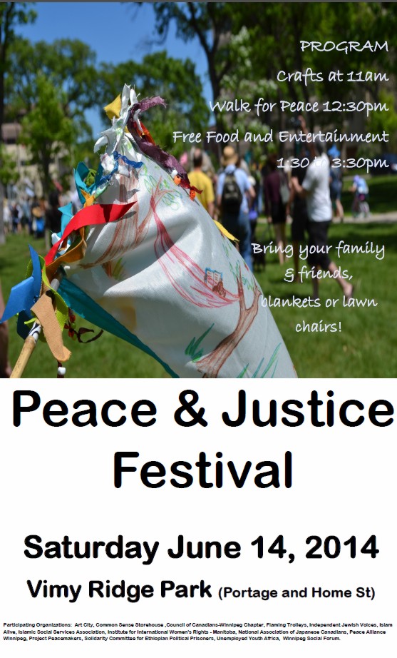 Please join us at Winnipeg Peace and Justice Festival – Saturday, June 14, 2014.