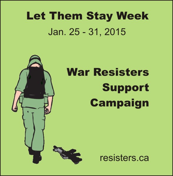 This Sunday marks the beginning of Let Them Stay Week, a national campaign dedicated to securing the safety of American war resisters who have sought refuge in Canada. As the War Resisters Support Campaign notes in a recent post, “In the last four months of 2014, an alarming number of U.S. Iraq war resisters in Canada received negative decisions in their immigration cases. Several of them have received, or are about to receive, removal orders from Canada.”