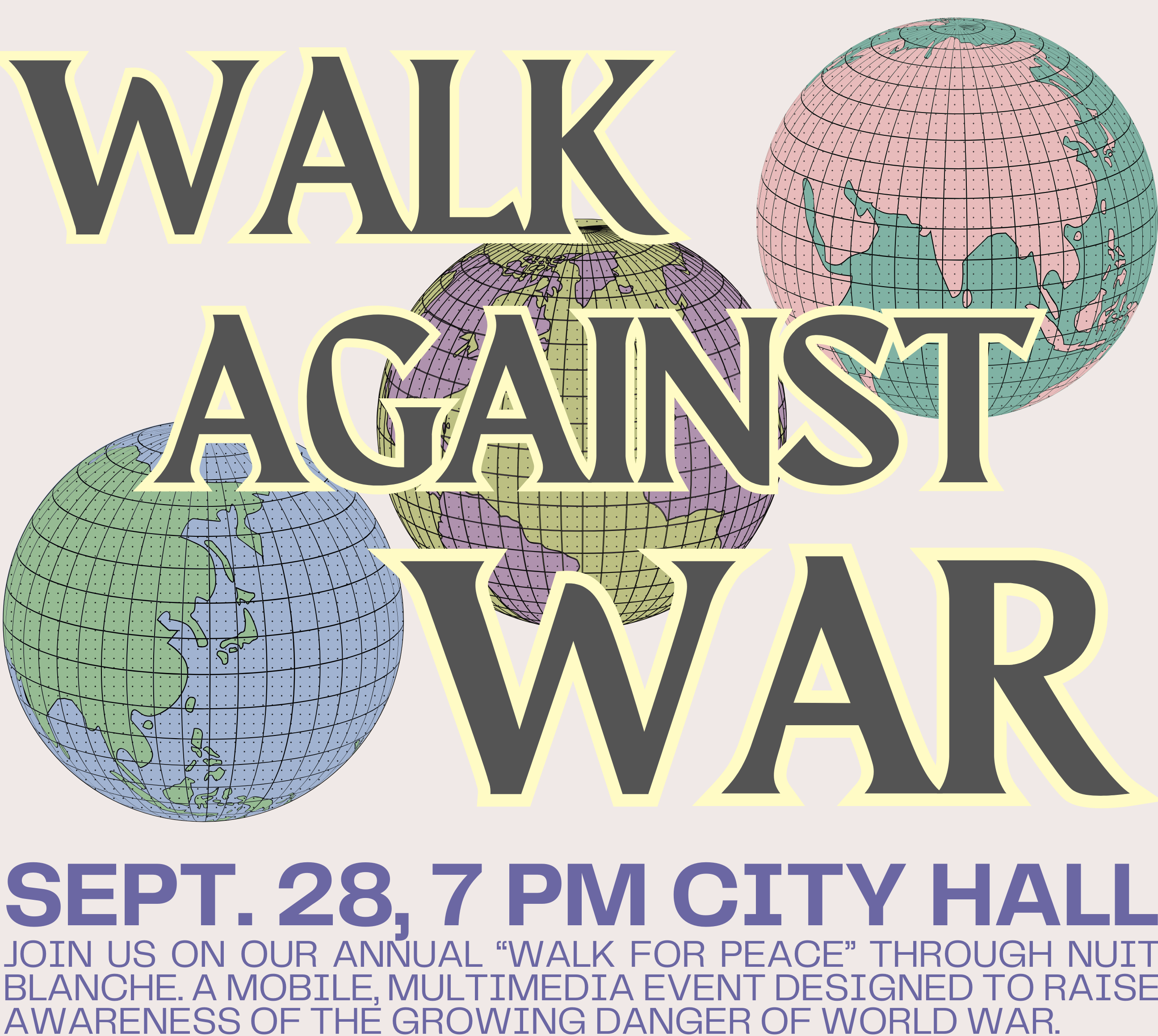 Sept. 28, 2024: Winnipeggers Walk Against War at Nuit Blanche Winnipeg. Photo: I. Pankratz