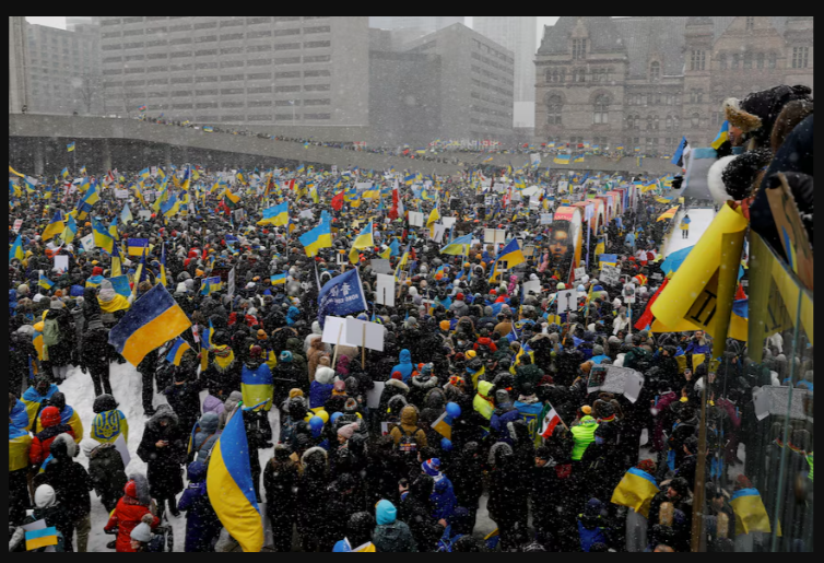 Feb. 22, 2022: Torontonians demonstrated their opposition to Russia’s invasion of Ukraine. Photo: Reuters: Chris Helgren