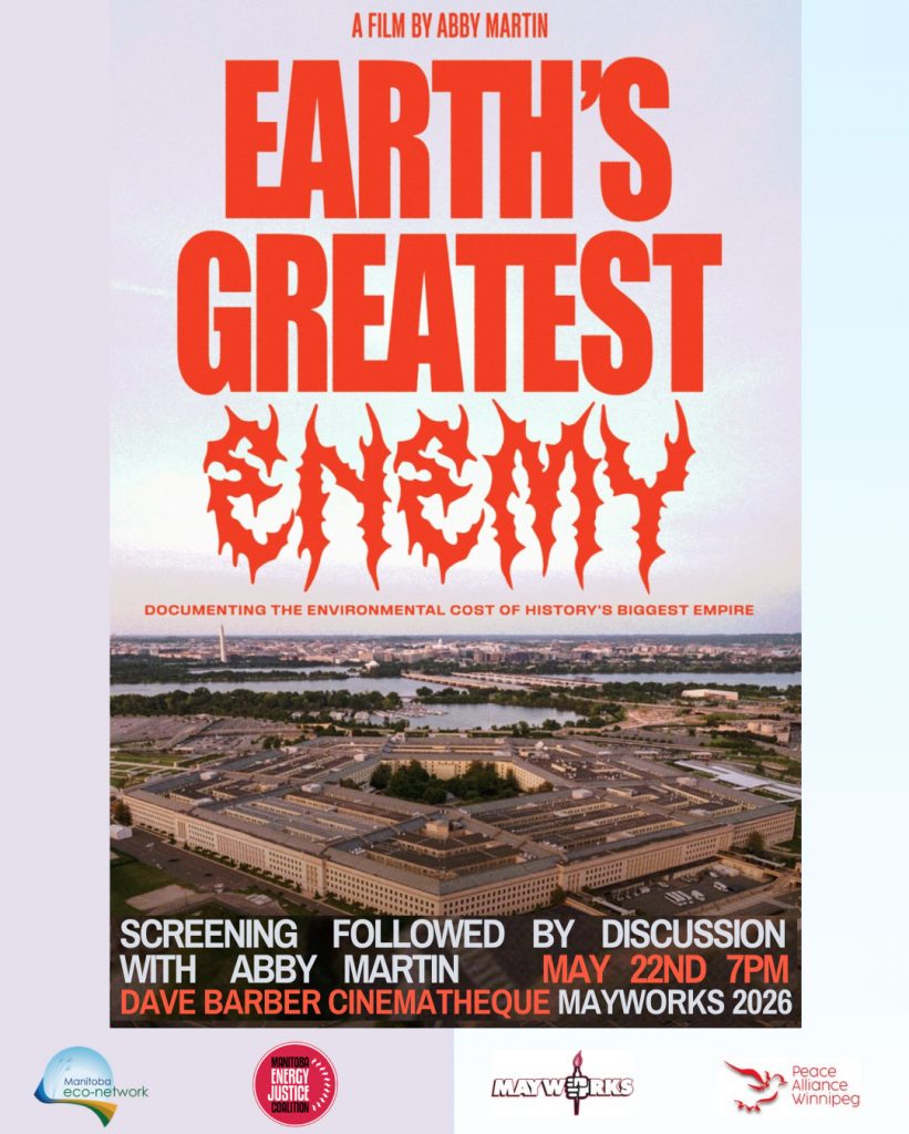 Co-presented by Peace Alliance Winnipeg, the Dave Barber Cinematheque, Manitoba Energy Justice Coalition, and the Manitoba Eco Network.